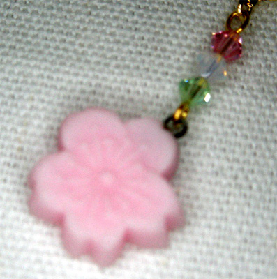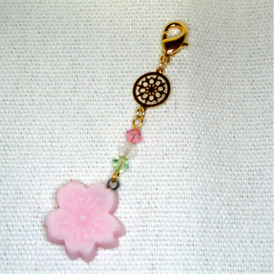 本物そっくりな和三盆ビーズの桜と天然石の花びら揺れるストラップです。