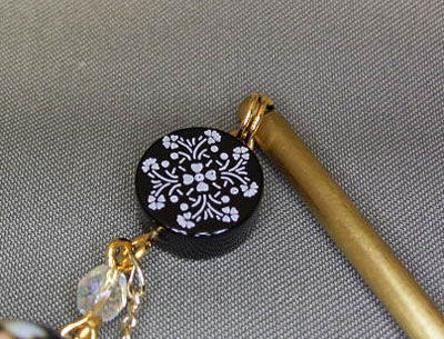 桜模様の転写ビーズと、表面にレーザーで柄をいれたちょっと変わったオニキスの簪です。