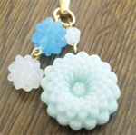本物そっくりな和三盆ビーズの菊と金平糖が揺れるストラップです。